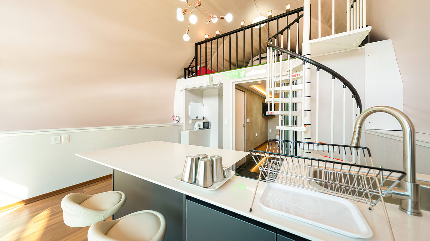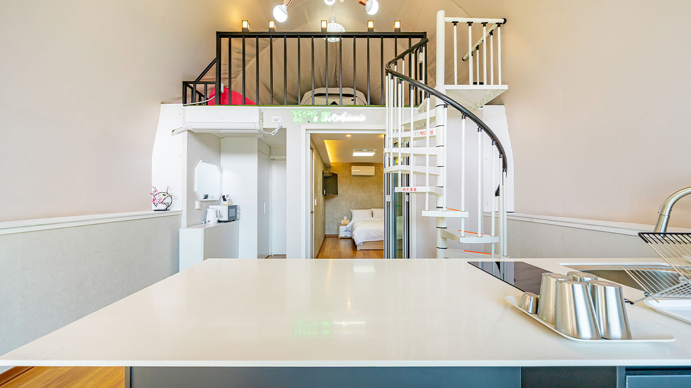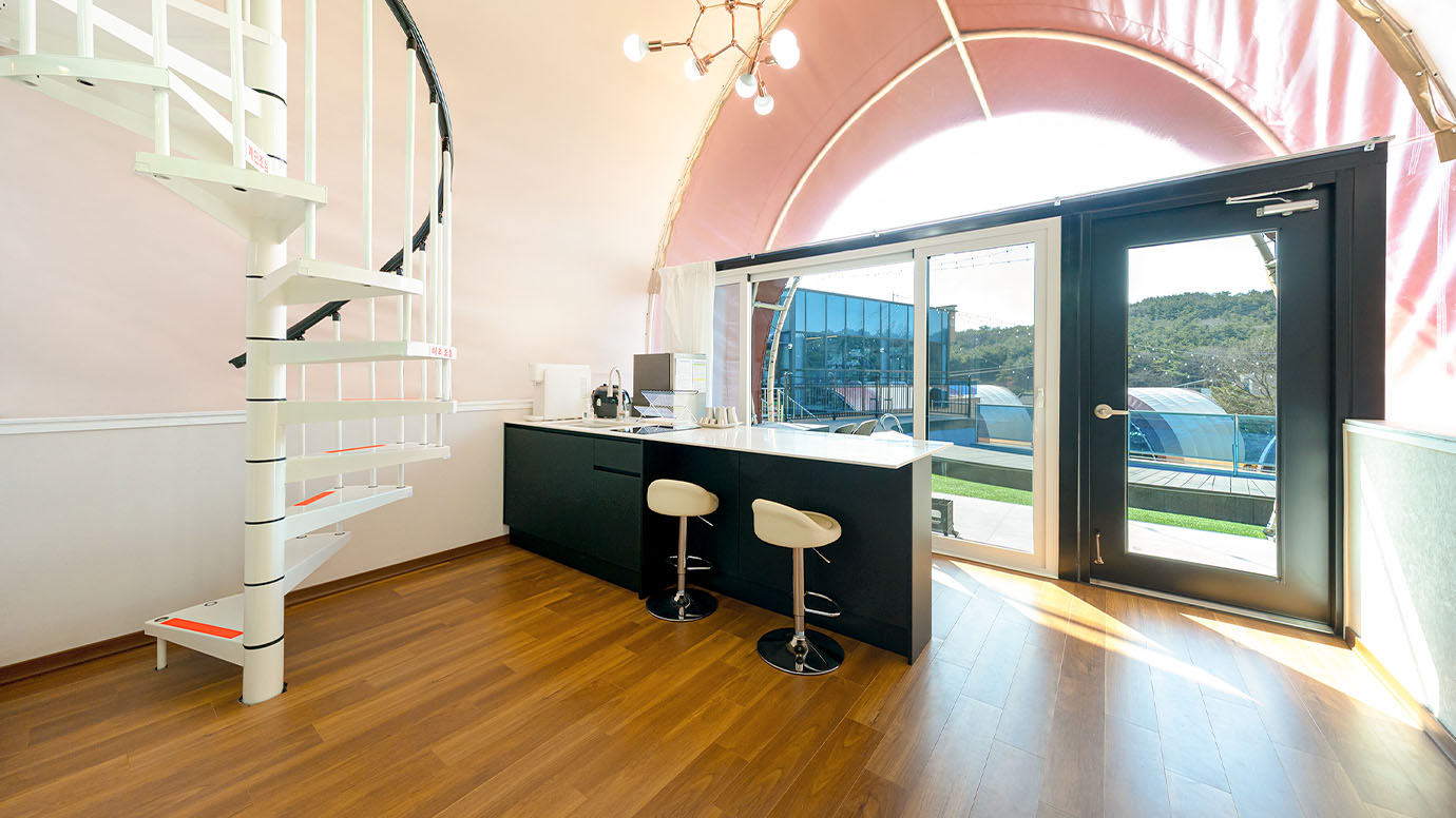탁 트인 전망 속에서 여유로운 휴식을 즐기는 프리미엄 복층 글램핑 공간입니다.
